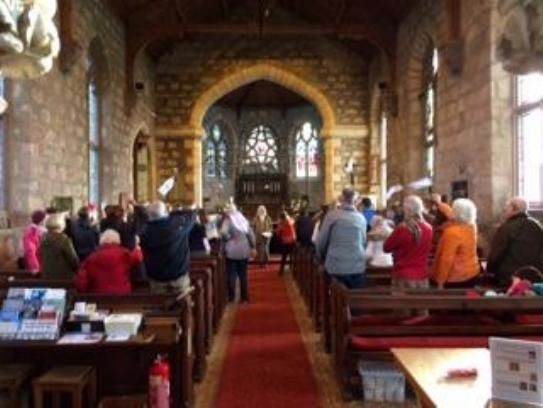 The latest Trail of Discovery to be launched was at St. Andrew of Scotland’s Church Fortrose on Friday 8th November 2019 and was attended by about 40 young students from Fortrose Academy, two members of staff and about 20 members of the congregation. Two of the admirable illustrations used in the Trail were done by students from Fortrose Academy, to whom certificates were presented by The Arts Society Highland.